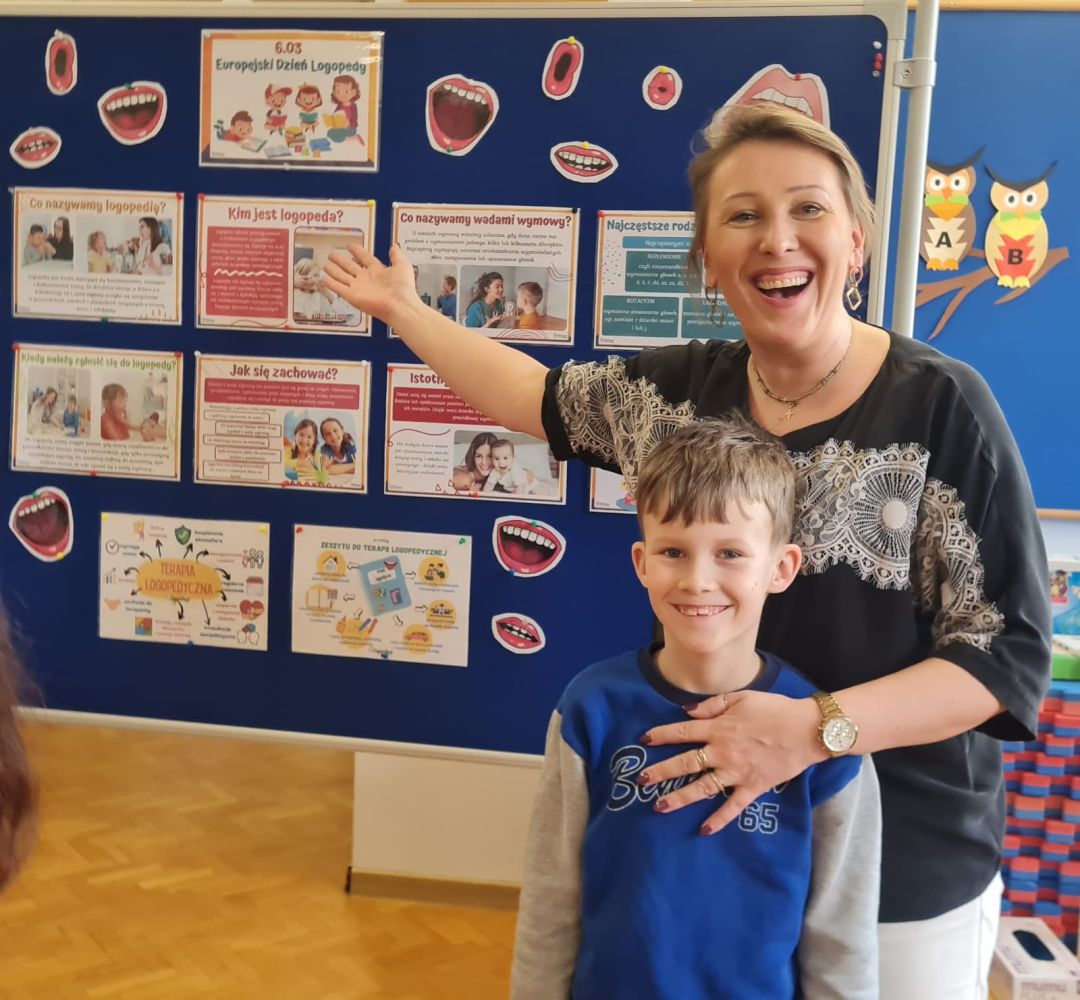W naszej szkole odbył się Dzień Logopedy zorganizowany przez logopedę szkolnego dla uczniów klas 1-3. Była to doskonała okazja, aby przybliżyć dzieciom, na czym polega praca logopedy oraz jak ważną rolę odgrywa on w rozwijaniu prawidłowej mowy i komunikacji.Podczas spotkania uczniowie dowiedzieli się, kim jest logopeda i jakie są jego zadania. Dzieci poznały przykłady ćwiczeń, które wykonuje się podczas zajęć logopedycznych, oraz dowiedziały się, nad czym pracuje logopeda wspólnie z dziećmi. Rozmawialiśmy m.in. o ćwiczeniach usprawniających narządy mowy, prawidłowe oddychanie, uważne słuchanie oraz wyraźną wymowę głosek.Największą atrakcją była przygotowana dla uczniów ścieżka ćwiczeń logopedycznych. Na kolejnych stanowiskach dzieci mogły spróbować swoich sił w różnych zadaniach i przekonać się, jak wyglądają ćwiczenia stosowane w terapii logopedycznej. Wśród przygotowanych aktywności znalazły się: