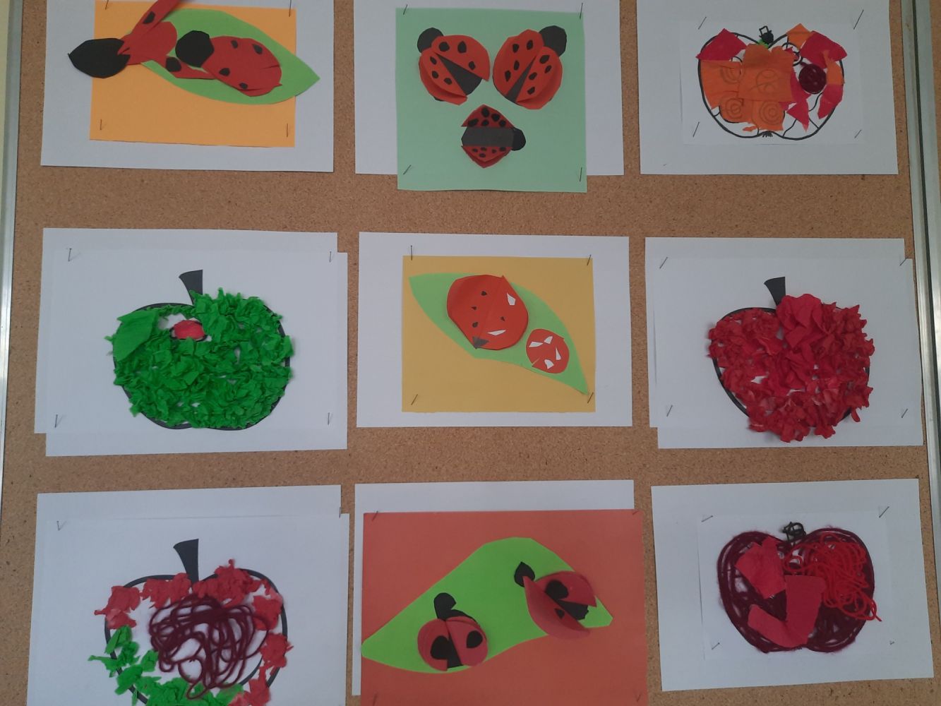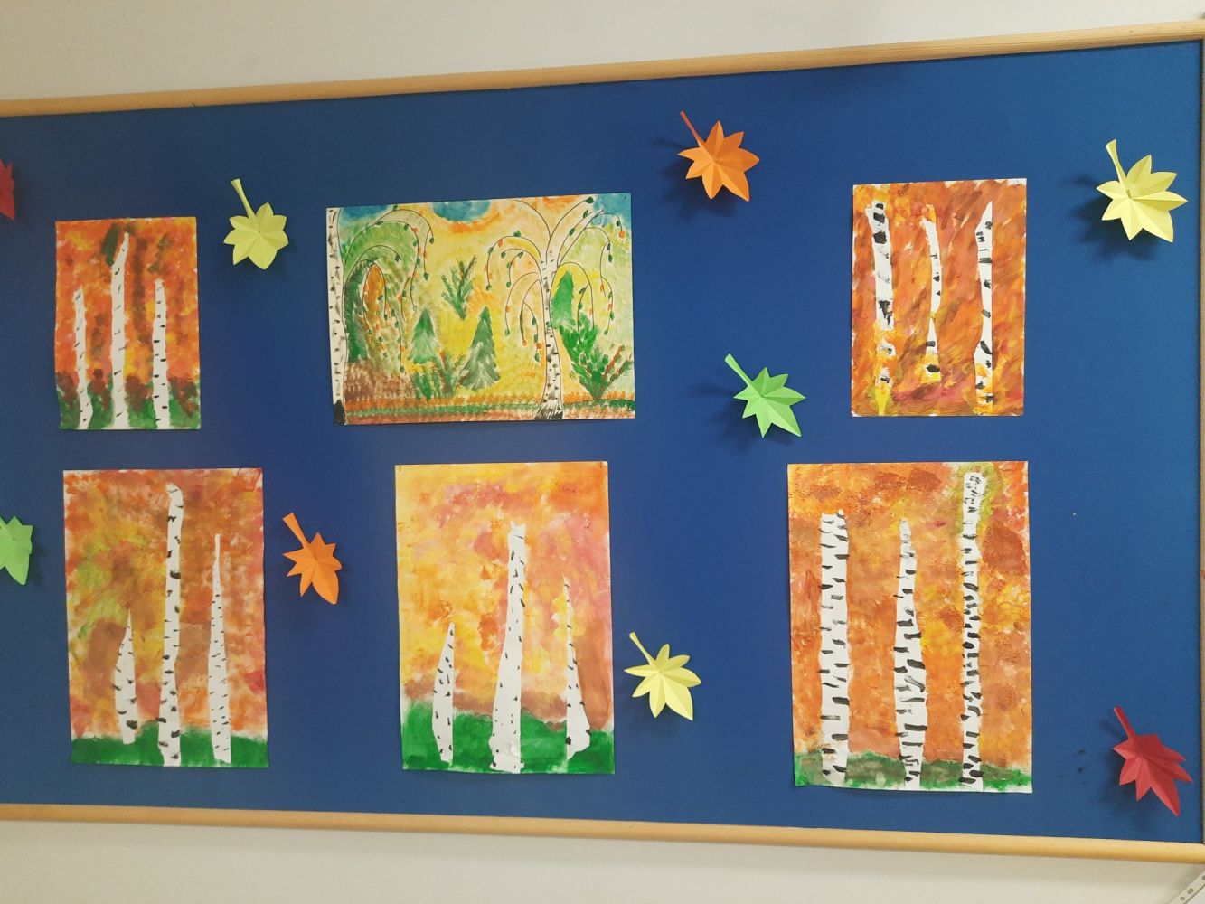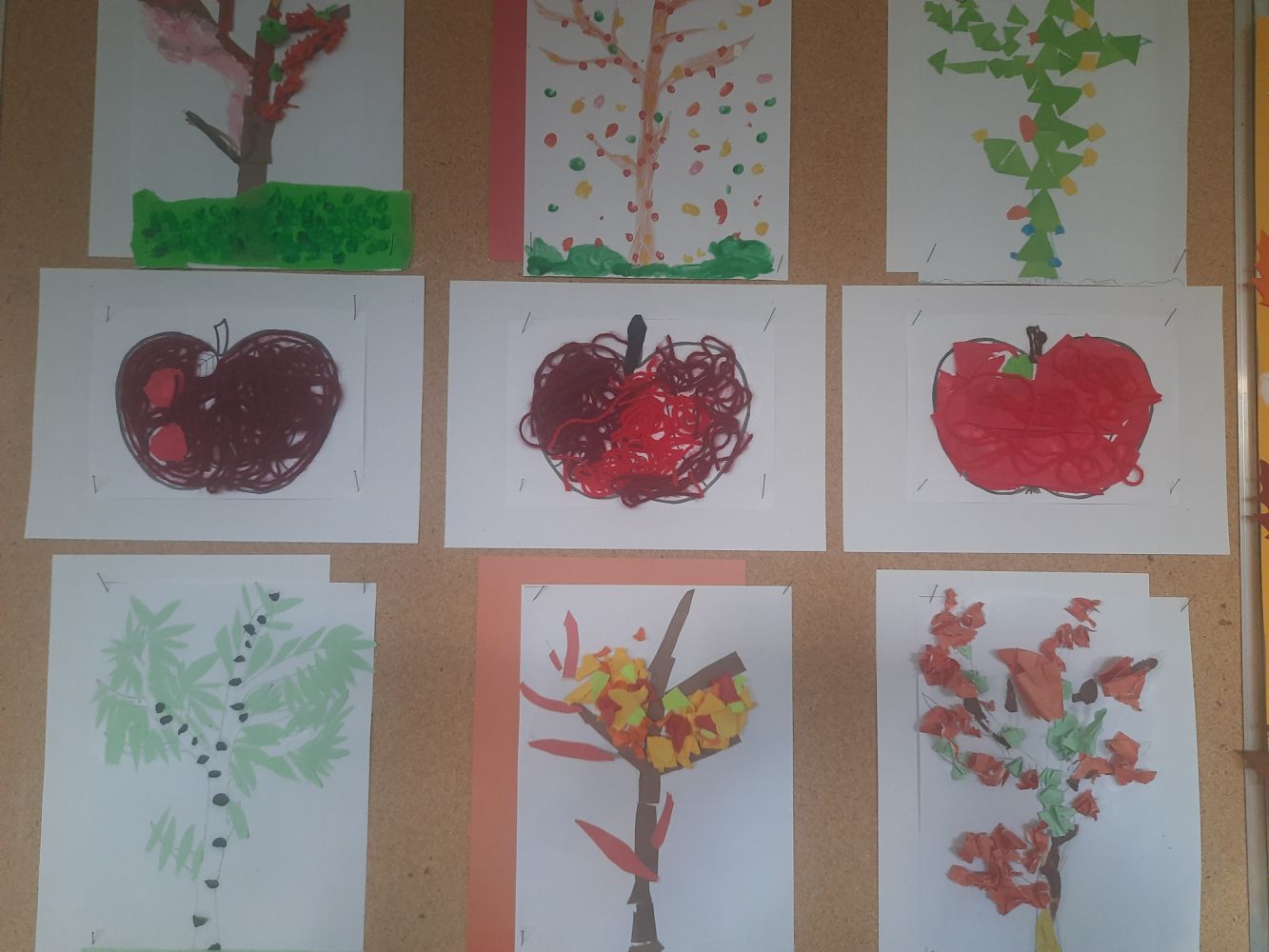 Kolorowe liście unoszone podmuchem wiatru wiruja wokół drzew, a dojrzałe kasztany i żołędzie zachęcają do radosnych zabaw i tworzenia przeróżnych postaci bajkowych. W sadach i ogrodach dobiega końca zbieranie pysznych, zdrowych owoców i warzyw. Skrzydlaci przyjaciele dawno opuścili swoje gniazda szukając ciepłych promieni słońca i bardziej sprzyjających warunków. Nowa pora roku jest wdzięcznym tematem do powstającej galerii prac naszych uczniów.