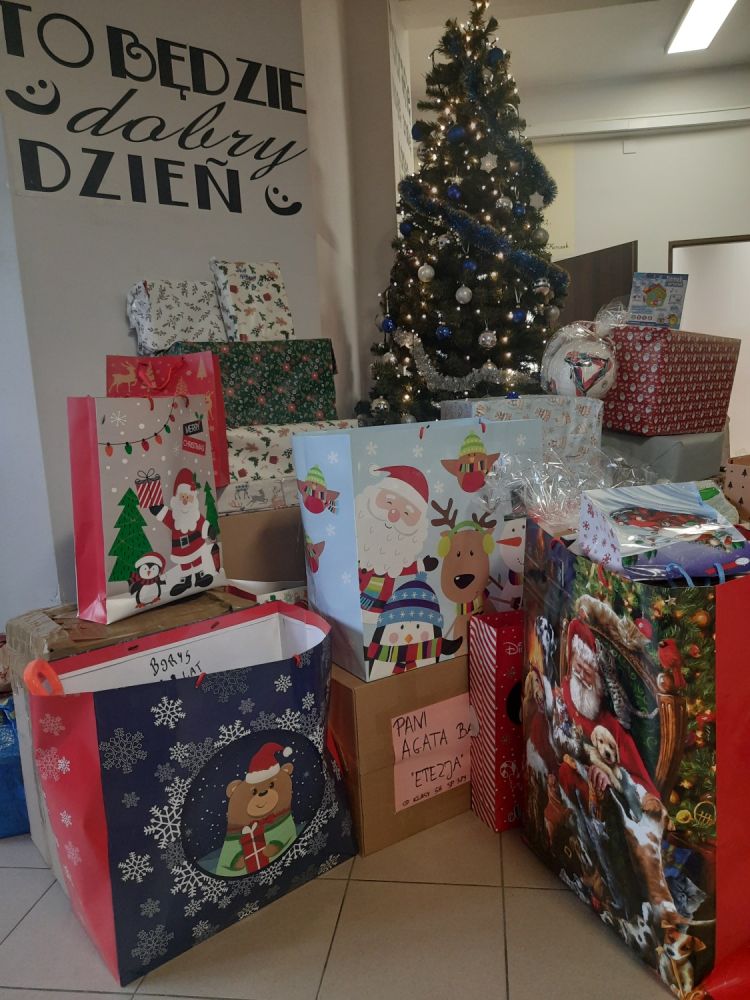 W tym roku był to Dom Samotnej Matki Etezja. Każda klasa wylosowała imię mieszkającego tam dziecka przygotowując dla niego paczkę. Liczba prezentów była ogromna. Dziękujemy